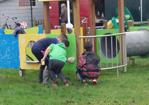 schoonmaken, tuin opruimen( bladeren en takken), speel attributen klaar zetten etc.