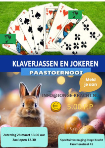 Zaterdag 28 maart organiseert Speeltuin Vereniging Jonge Kracht een Klaverjas en Joker toernooi.